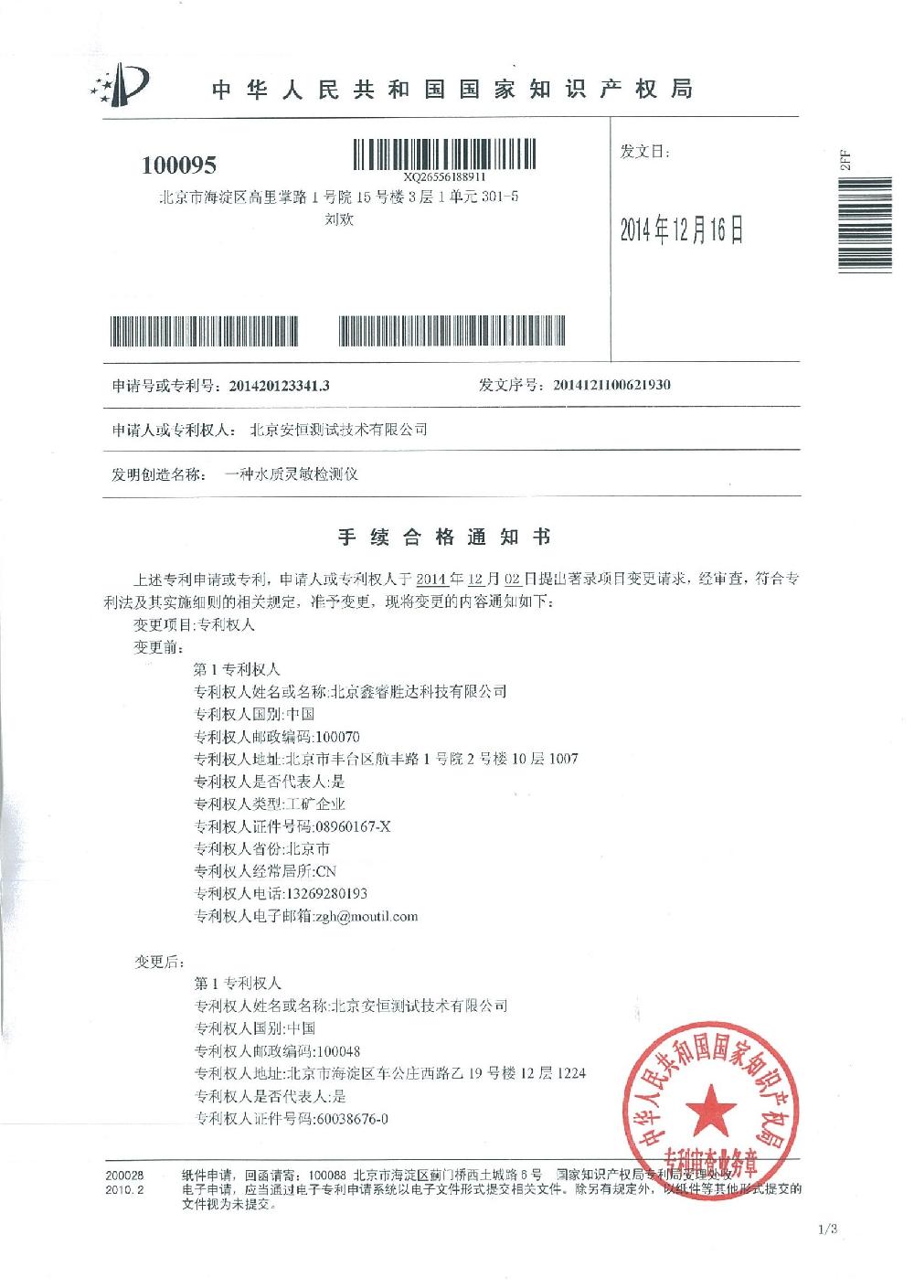 安恒新闻 / 安恒新闻 / 关于安恒 / 实用新型—— *种水质灵敏检测仪