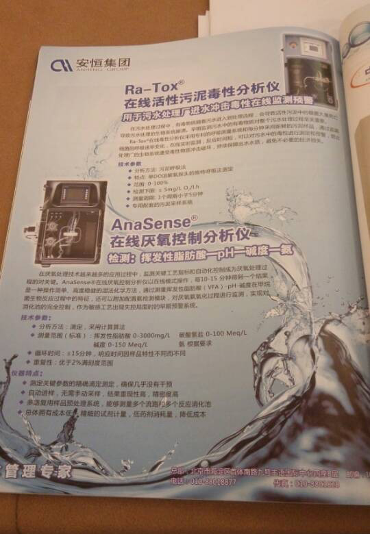 会上,安恒集团以会刊广告的形式向与会者展示了Ra-Tox®在线活性污泥毒性分析仪和AnaSense®在线厌氧控制分析仪,引起了参会人员极大的兴趣。