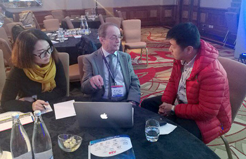 水联网公司总经理周晨先生在现场就漏损管理问题与英国控漏专家Malcolm Farley先生进行交谈